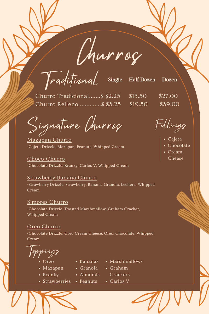 But churros are just the beginning. Alongside these sweet wonders, you'll find an inviting selection of crafted beverages, including the Mazapan Iced Coffee and Chai Latte. Each cup brims with rich flavors, making them the perfect companion for your sweet treats. Try their Matcha Latte, a beautiful blend of health and taste, or indulge in the soothing notes of the Tumeric Ginger Tea for a gentle pick-me-up.